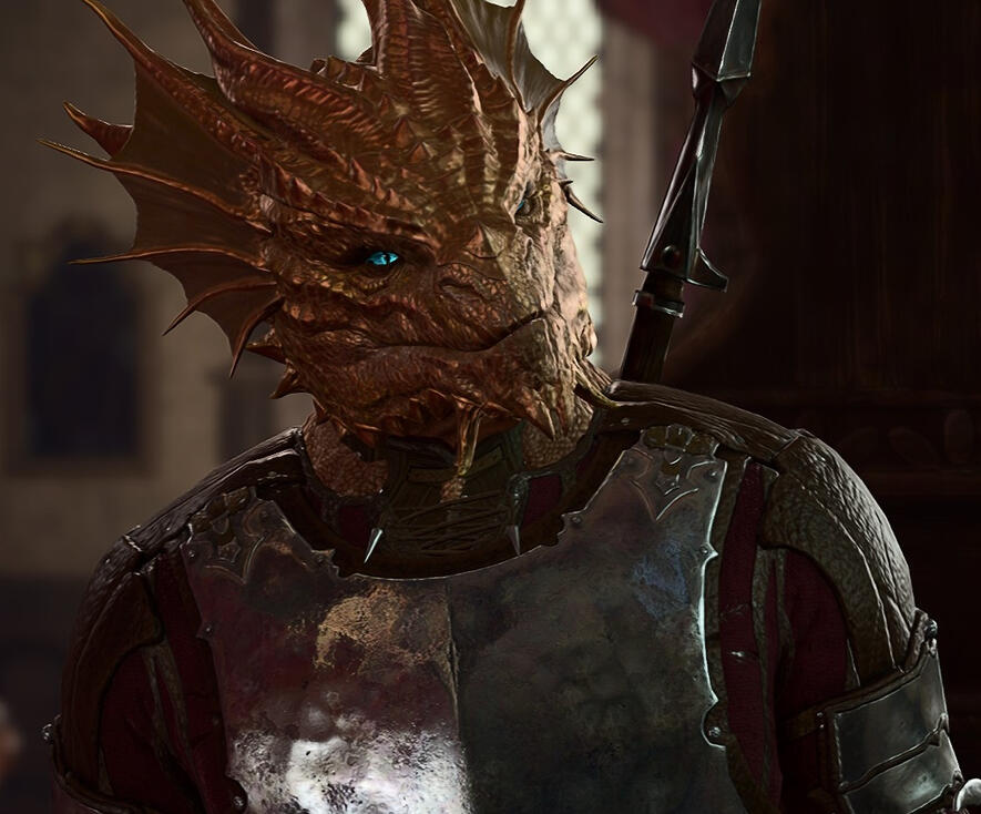 Rheighar Drraseth was born in Tymanther, a dragonborn-ruled military dictatorship located in the east of Faerûn. Primarily raised by his father, as was customary with his race, it was soon found out that the bronze dragonborn had been gifted with a powerful predisposition to the arcane. Thus he grew into one of a very small number of Thymari sorcerers.Though he accomplished military service in the ranks of the Lance Defenders of Djerad Thymar, it was primarily on his own that Rheighar hunted dragons, who were said to have created dragonborns to enslave them and who kept attacking Tymanther relentlessly. Basking in the glory brought by each successful hunt, now a hero of his clan in line to become its patriarch, Rheighar's thirst for more power and fame was unsatiable.Until his hubris led him to think he could defeat a goddess. In a disastrous expedition which caused the loss of an entire cohort of Defenders, Rheighar defied the dragon Tiamat and lost the near-entirety of his arcane powers in the process.